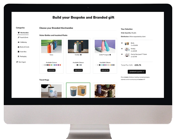 Choose one of our branded product collections, or use our bespoke gift builder to create your own branded swag pack.